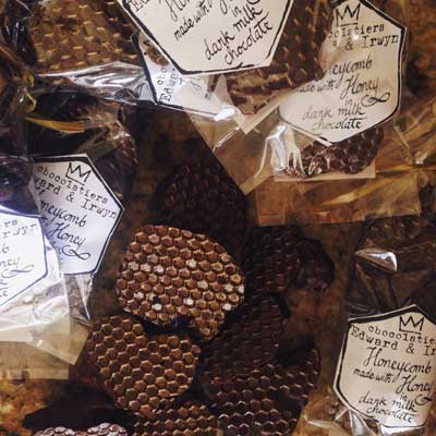A box of all our favourites. A hand cut bar of creamy milk chocolate with vanilla and Icelandic black lava salt; salted honey caramels, and real honey honeycomb in dark milk chocolate.