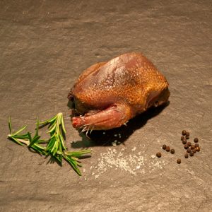 Pigeon is rich in colour and flavour and a great bird for roasting. About 300g in weight they are suitable for 1 person and make sure that you get the streaky bacon to dress the top of the bird to keep it moist and tender.